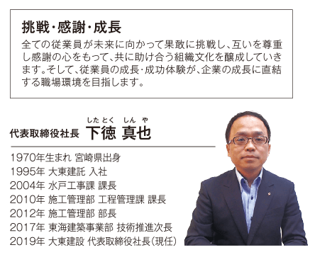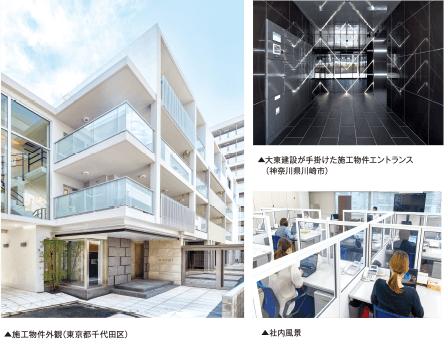 また近年では、他社のディベロッパーや設計事務所からの施工請負契約を積極的に獲得することで、技術力向上とリスク分散に力を入れています。加えて、収益力拡大に向け、建設にかかわる周辺事業(軽作業・荷揚げ事業、警備事業)も開始し、大東建託グループ内での存在意義の確立を目指しています。