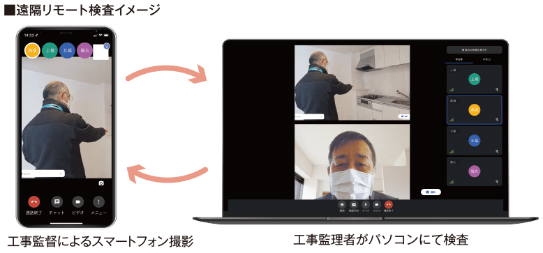 品質管理においては、遠隔リモート検査の拡充とアフターサービス点検の一部専任化を実施し、工事課社員が現場に専念できる環境を整え、施工品質の維持と顧客サービスの向上につなげます。
