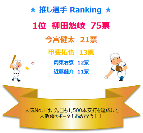 選手の他にも、王貞治会長や、本多雄一コーチ、選手全員、などの回答もありました!