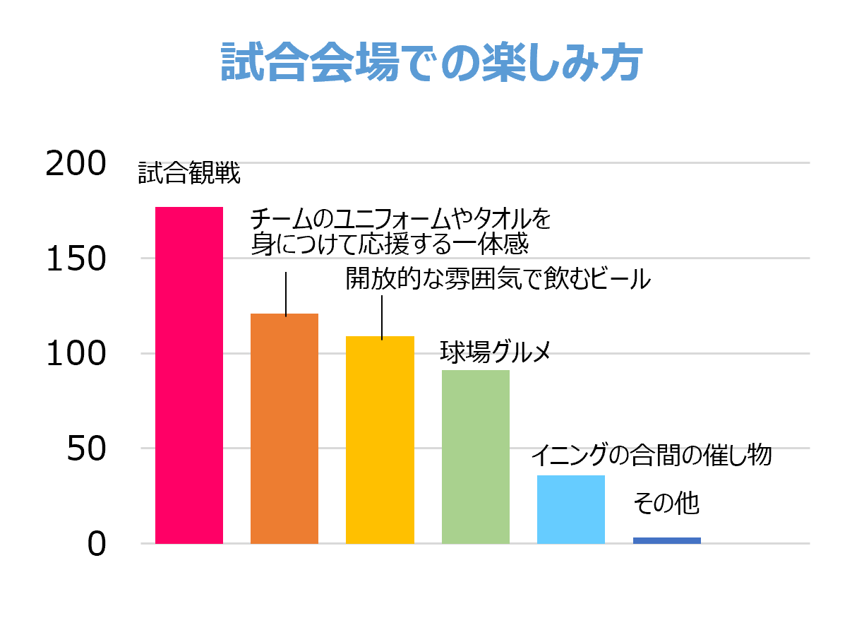 第1回目のアンケート調査では、この他にも、「社員一丸となって盛り上げていきたい」「 「応援団員を募って観戦できる日が欲しい」などの応援団員としての熱き思いや、選手たちとのコミュニケーションなどのイベント企画へのご意見など、沢山の声を届けていただきました。