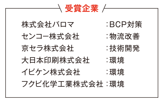 今年のサプライヤ-マネジメント会議はBCP対策・物流改善・技術開発・環境への取り組みに貢献した取引企業様6社に対し「サプライヤ-アワ-ド」として竹内さんから、賞状とトロフィーを授与しました。