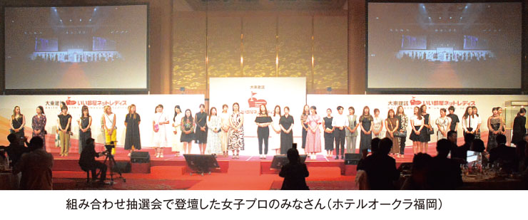 プロアマ大会前夜には、翌日一緒にプレイする女子プロを抽選で決定する「組み合わせ抽選会」を開催しました。