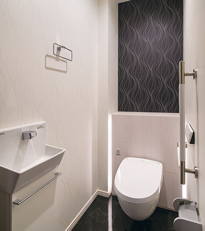 便器はフロートタイプとし、清掃性とデザイン性を両立。