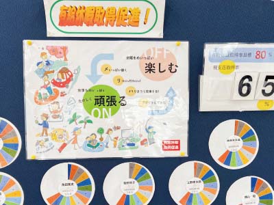 個人の有給取得日数を一目で分かるように円グラフで掲示しています。掲示物を確認することで、目標に向けて支店従業員が自主的に有給休暇を取得しています!