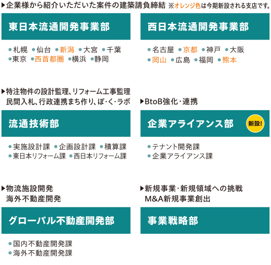 51期コア事業(法人営業)の強化と不動産流動化事業を推進し、また新たな領域にチャレンジするため、事業開発本部は下記の新組織体制となりました。