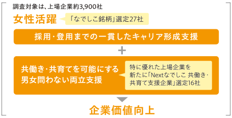 - 経済産業省と東京証券取引所が共同で実施する「女性活躍推進」に優れた上場企業を選定する。