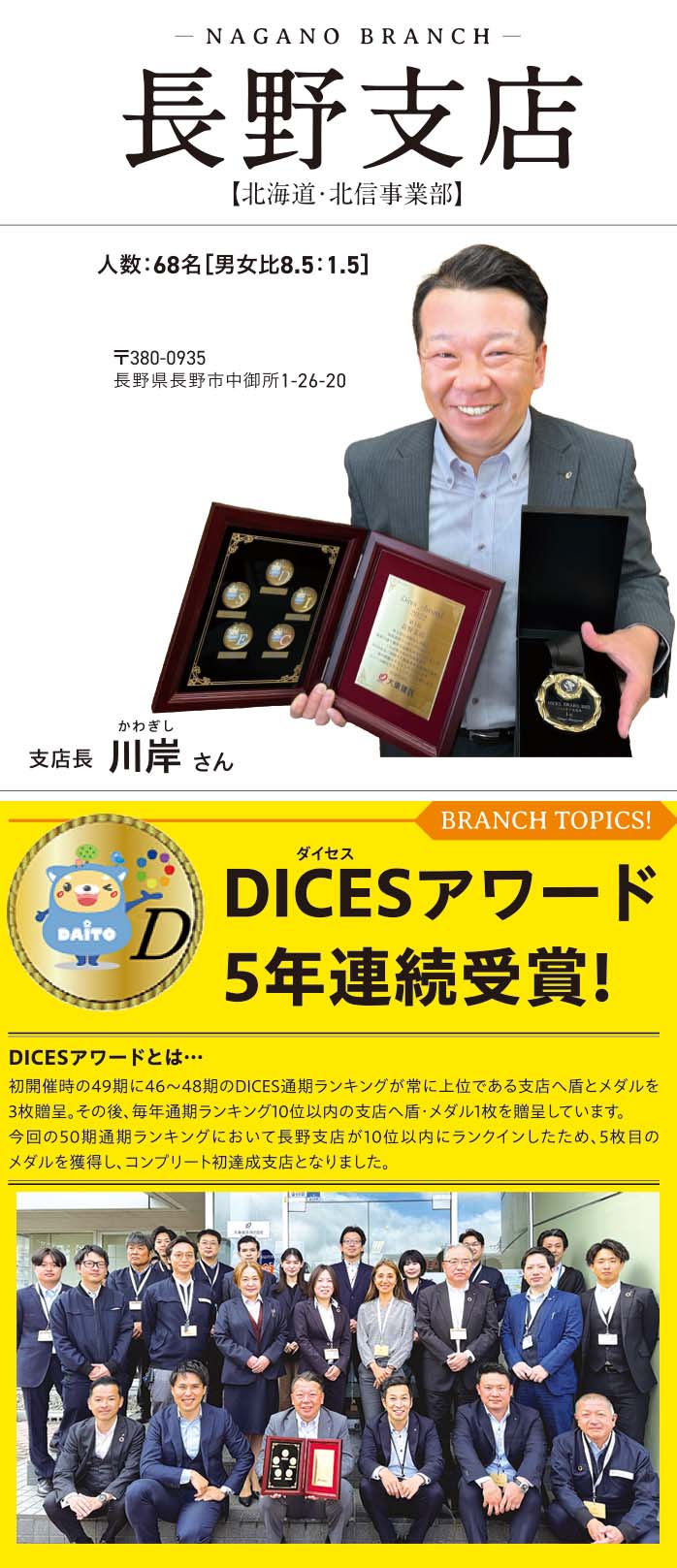 DICESは働き方の指針であり、必然的に支店環境の改善になるものと捉え、1位を取ることを意識し支店全員ワンチームで取り組みました。