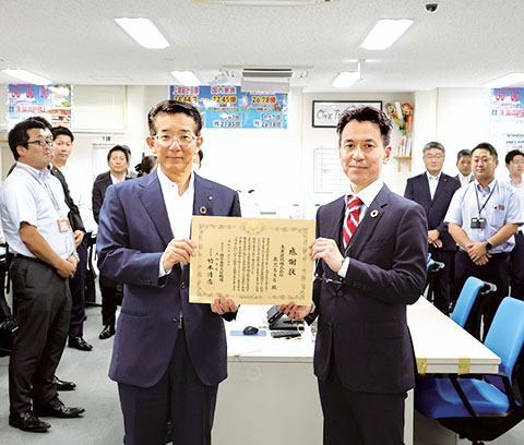 鹿児島支店は2023年度の融資受理件数22件(2位 富山支店)、金利優遇摘要ZEH件数7件、共に全国最多で、支援機構の利用促進と、支援機構の目指す「環境配慮融資」に大きく貢献したため表彰されました。賃貸融資の手続き代行業者が、このような感謝状贈呈の対象となることは珍しいことです。当社は今後も環境配慮型住宅の提供の融資を促進します。(営業管理部)