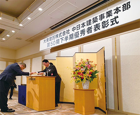 2024年5月13日(月)~5月24日(金)の平日6日間、東日本・中日本・西日本の建築事業本部別に各2回、50期下半期本部別優秀者表彰式が執り行われました。本表彰式は表彰機会の増設を目的として、今回で2度目の開催となります。