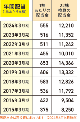 手間なく自社株式を取得でき、配当金分も持株数が増える非常に魅力的な制度です。
