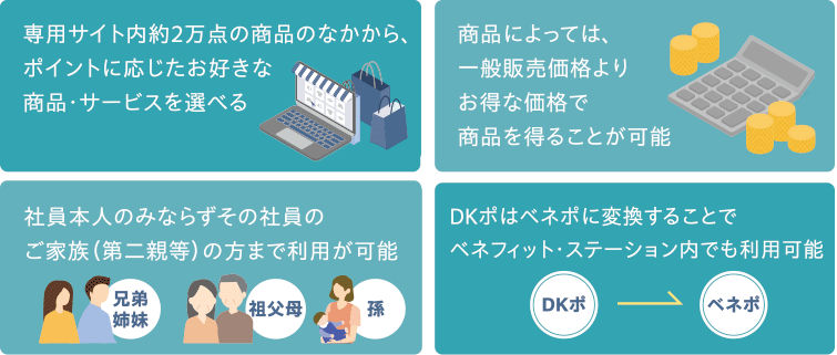 DKポはDICES評価や、各部署が社内で行っている施策で付与されます。