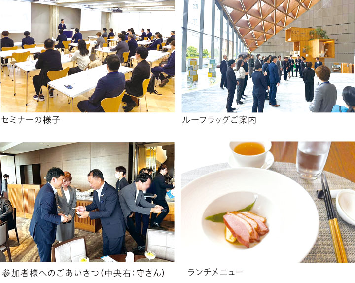 ツアーに併せ開催したランチ会では10月9日(水)にはパートナーズ守さん、松川さん、両会に営業統括部 小石川さんが全卓ごあいさつに回られ、当社建物の開発姿勢やこだわりについて説明し当社に対する理解向上につながりました。参加いただいた不動産業者様に心より感謝申し上げます。