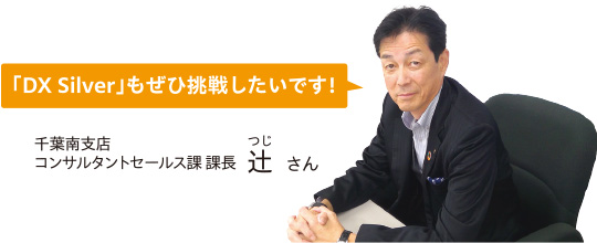 今回は、DX認定資格「DX Beginner」と「DX Bronze」を取得した千葉南支店 コンサルタントセールス課 課長の辻さんにインタビューしました!