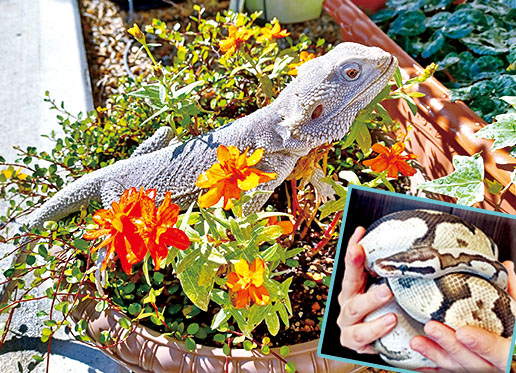アゴくんはよくイグアナと間違えられます。バナナやカボチャが大好きで、週末には温浴や日向ぼっこをしてます。ボーちゃんはとてもおとなしく、ペットスネークのなかでも人気No.1です。部屋を散歩させますが隠れるのが上手なので見失うと見つかりません! お迎えしてから早1年。配送業者さんが来た時にはたいていこの子たちの話題で盛り上がり、なかには触っていく方もいます♪ 今では大切な家族です。