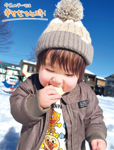 食べることが何よりの楽しみ!!久しぶりの晴れの日に、積雪の公園で食べる食パンはいつもと違って格別なお味! ! 寒さに負けずすくすく成長中!!!