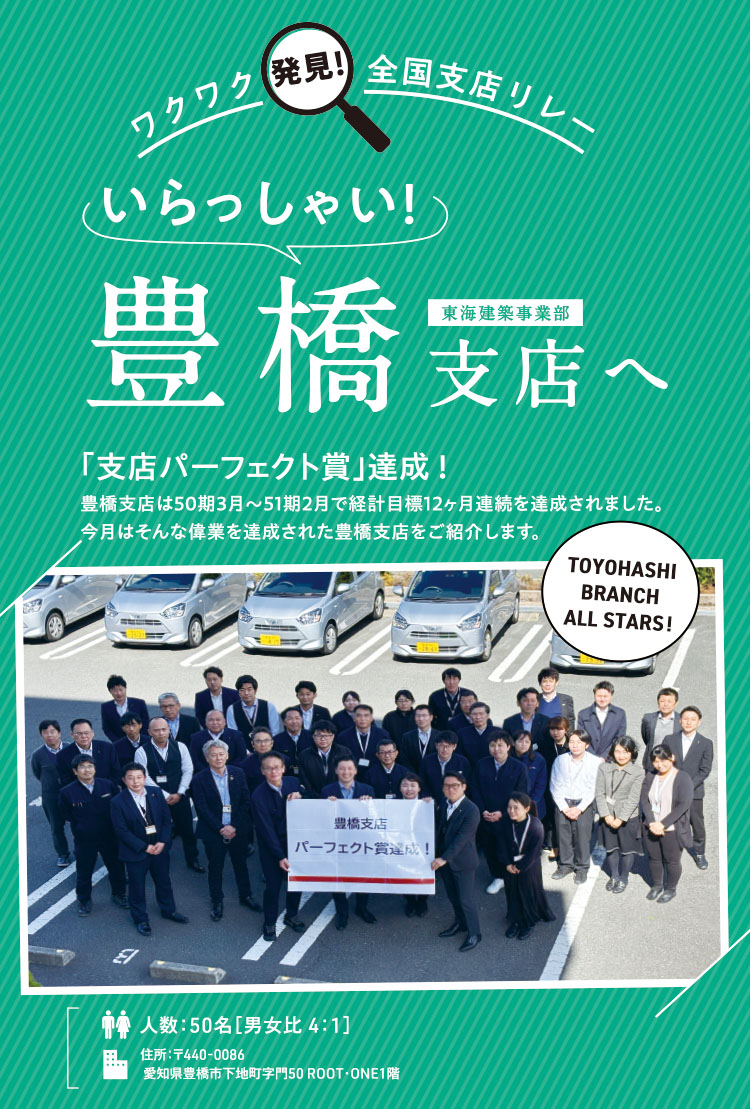 51期に自身2度目の社長賞を受賞した豊橋支店のエース。