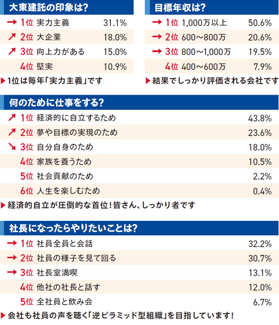 新卒入社の皆さんに毎年恒例のアンケートを実施しました。