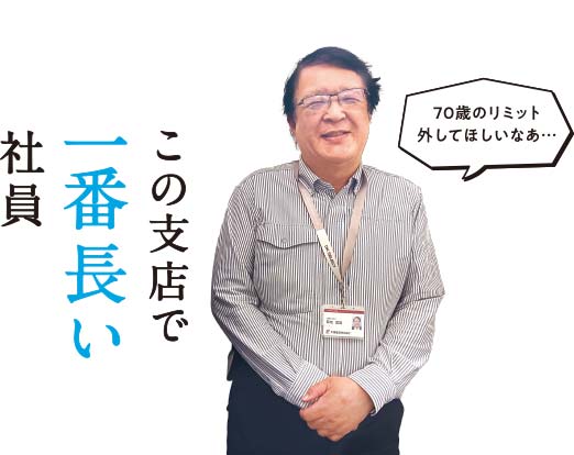 入社37年目69歳!会社の酸いも甘いも嚙み分けたレジェンド社員です!趣味は海外旅行。35年のリフレッシュ休暇はヨーロッパへ。帰国した翌日にキャンペーン旅行のハワイへ。まだまだ現役!