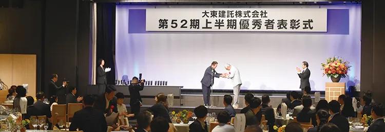 11月17日(月)から、東日本・中日本・西日本・流通開発の建築事業本部別に各地で計8回、52期上半期本部別優秀者表彰式が執り行われました。各事業部からは、担当者95名、課長91名の合計186名が優秀者として表彰されました。