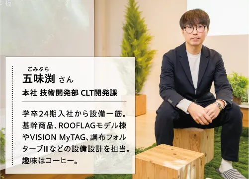 私は開発部分の構造を担当しました。開発工程がどんどん伸びて「これ、いつ終わるんだろう?」と精神的にも不安になることもありましたが、CLTの単価引き下げなどコストカットの面で多くの方にご協力をいただきました。今回の受賞がご協力いただいた皆さんにも喜んでいただけると嬉しいですね。また、北村さんも話されていましたが、今回は『基幹商品としてのフォルターブⅢ』の開発と『調布フォルターブⅢ』をそれぞれ詰めていかなければならず、そこが大変でしたね。