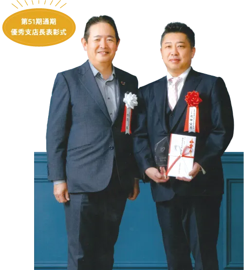 52期上期優秀担当者賞9位と社長賞受賞、10月で努力賞V5を達成、さらにプライベートでは第3子の誕生と、絶好調の関口さん。今後も頼みます、と支店一同思っております!