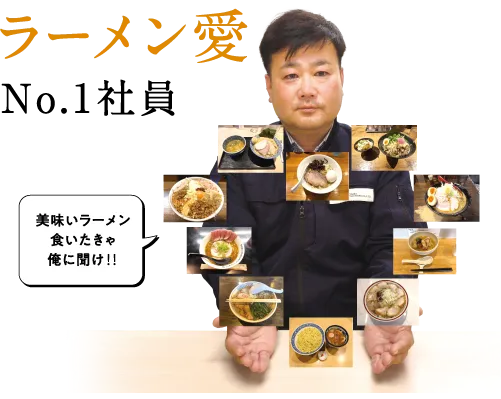 新規物件や同僚の現場も近隣のラーメン屋の場所で把握。たまに上司の山田さんから来るラーメン写真クイズも70%OVERの高正答率…!!らーめん愛 つくば支店No.1社員です。