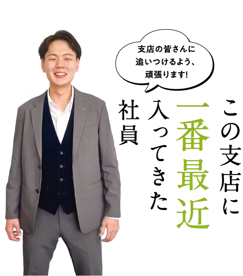 10/1入社の西尾さんです。入社して1か月半、今はまだ、研修と外回りを始めた所で、日々奮闘中!まずは、初拳績を目指して日々お客様へ訪問しています。